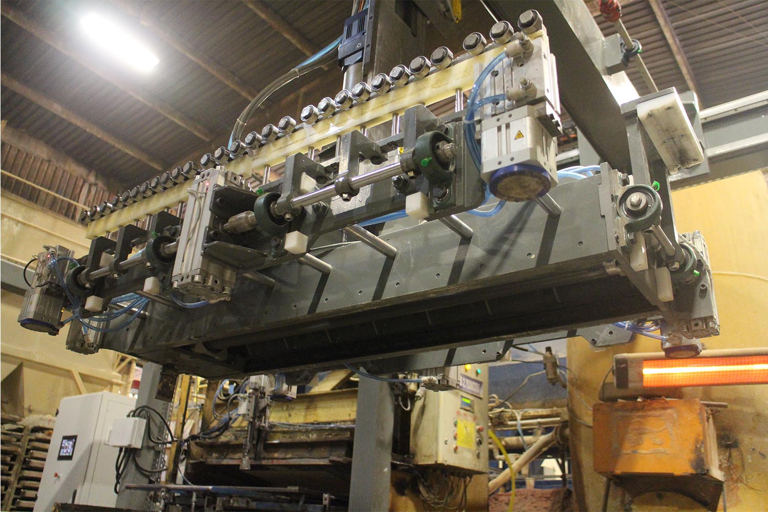 Sistem pres makinelerinde hazırlanan ve ağırlıkları 50 ila 120 kilo arasında değişen ürünleri pres makinelerinden alarak arabalara otomatik olarak dizmektedir.