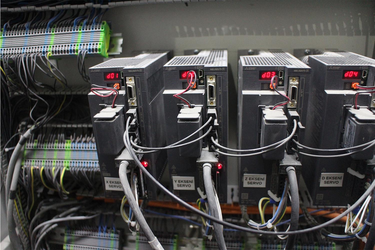 3 eksen kartezyen interpolasyon 1 eksen dönme hareketi toplan 4 eksen servo hareket