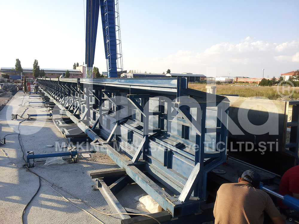 Sistem pres makinelerinde hazırlanan ve ağırlıkları 50 ila 120 kilo arasında değişen ürünleri pres makinelerinden alarak arabalara otomatik olarak dizmektedir.
